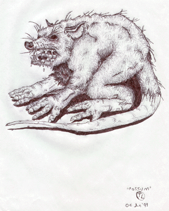 right?) -- said, "We thought... um..." She glanced at the possum, which stood